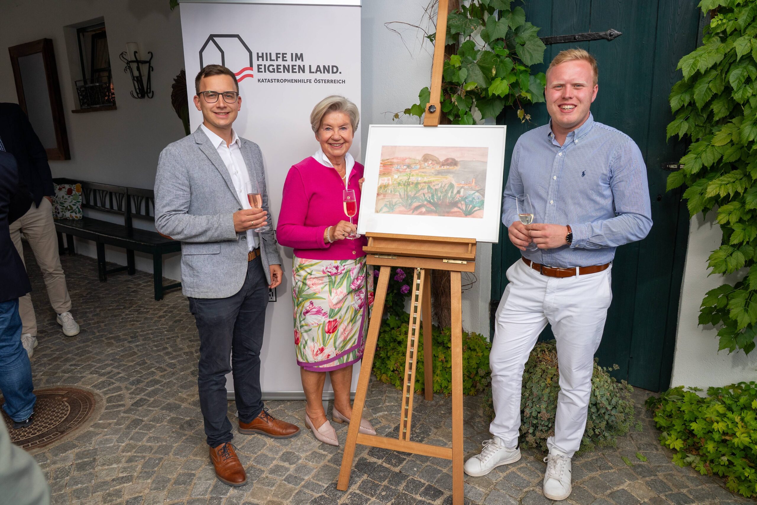 Helfen, Hilfe leisten und Nächstenliebe sind die drei Säulen unseres 60-jährigen Vereinsjubiläums. Die heutige Veranstaltung übersteigt einmal mehr alle meine Erwartungen. Ich bin überglücklich, denn mit diesem Betrag können wir Menschen und Familien unterstützen, die durch harte Schicksalsschläge von einem auf den anderen Tag den Boden unter den Füßen verlieren, so wie z.B. eine junge Familie, deren Mutter und Ehefrau zwei Stunden nach der Geburt der zweiten Tochter plötzlich verstorben ist und der wir nun mit einer monatlichen Kinderpatenschaft zumindest die finanziellen Sorgen nehmen möchten. Ein herzliches Dankeschön an KR Andi Ubl für sein großes soziales Engagement, Sammler Michael Bertalanffy, der das Kunstwerk zur Verfügung stellte und der Winzerfamilie Pröll für die Gastfreundschaft“, so eine sichtlich gerührte Sissi Pröll bei ihren Dankesworten.
