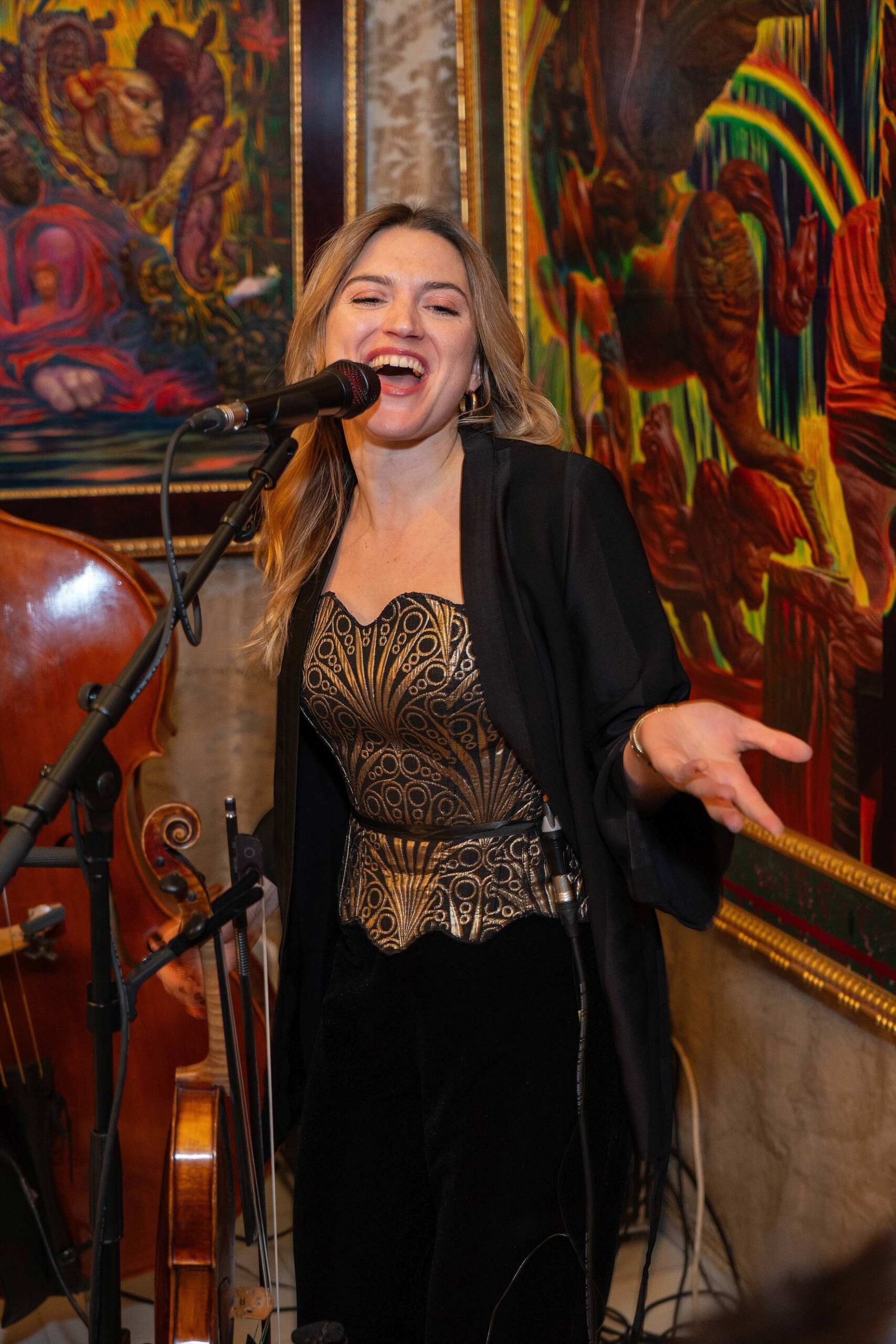 Das künstlerische Rahmenprogramm gestaltete diesmal die Musikgruppe „Baba Yaga“ mit Frontfrau Jasmin Meiri-Brauer. Die jungen MusikerInnen präsentierten bunte Musikstile aus Balkan, Klezmer, Gypsy Jazz und osteuropäischen Tänzen und begeisterten mit ihrer Virtuosität das Publikum.